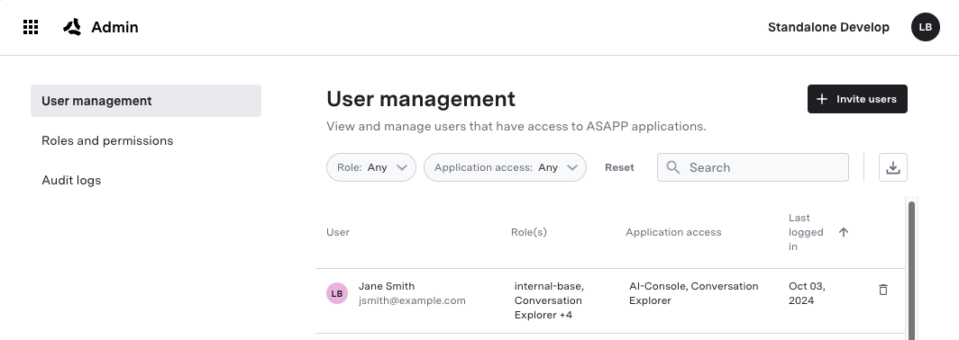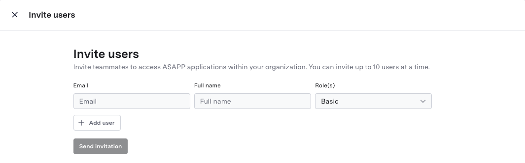 Access to ASAPP is managed via roles. A role is a collection of permissions which dictate what UI elements a user has access to. By default, all users must have the Basic role, allowing them to log in to the dashboard. But you may create and assign as many roles as you like per given user.