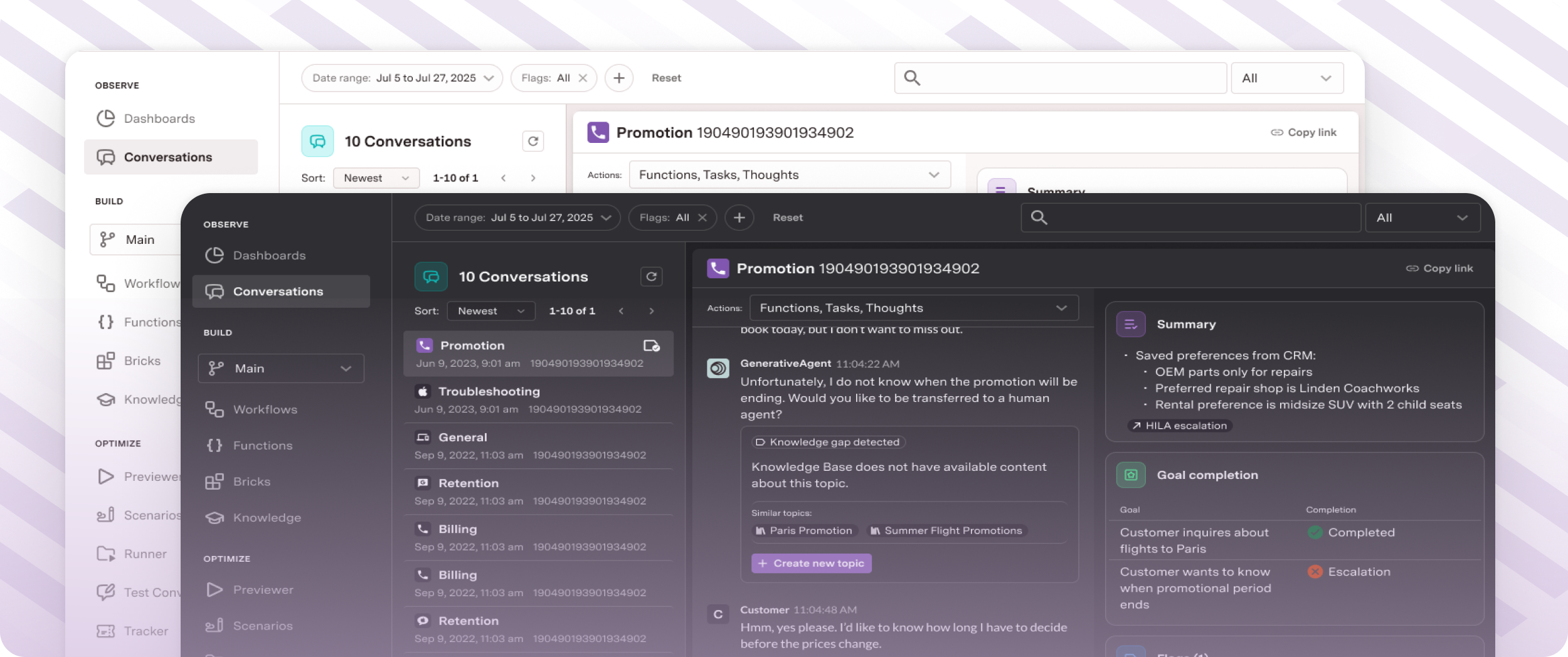 Empower your GenerativeAgent with human judgment and support by bringing in realtime human judgment, or fully hand off the conversation to a live agent.Human in the Loop Agent
